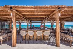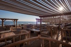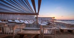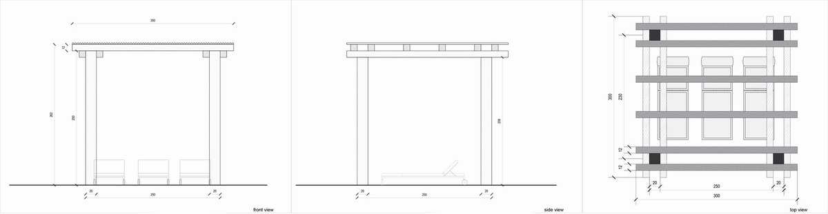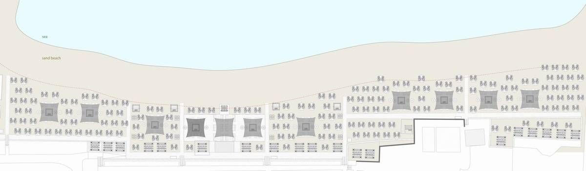 海滩分为五个区域,包括室外沙发床,躺椅,座椅区,以及凉棚。天然材料是建筑与景观能形成对话关系的首要元素。