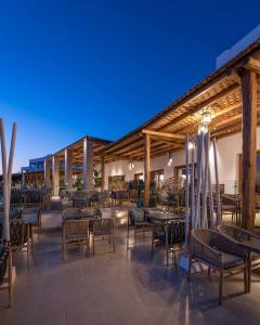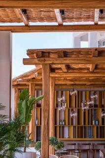 Elastic建筑事务所的目标是将酒店打造成一个高度美观,宾至如归的地方。建筑的设计风格简洁,并且对决定功能空间的希腊元素进行了强调。光与影的游戏,一览无余的美景,天然的本土材料,这些都是设计中考虑的关键元素。穿过柳条凉棚投射下来的阴影,突出了建筑的纹理,由此打造出一个不断变化的环境。总的来说,一个现代化的度假村是根据功能需求与自然环境相结合而形成的。
