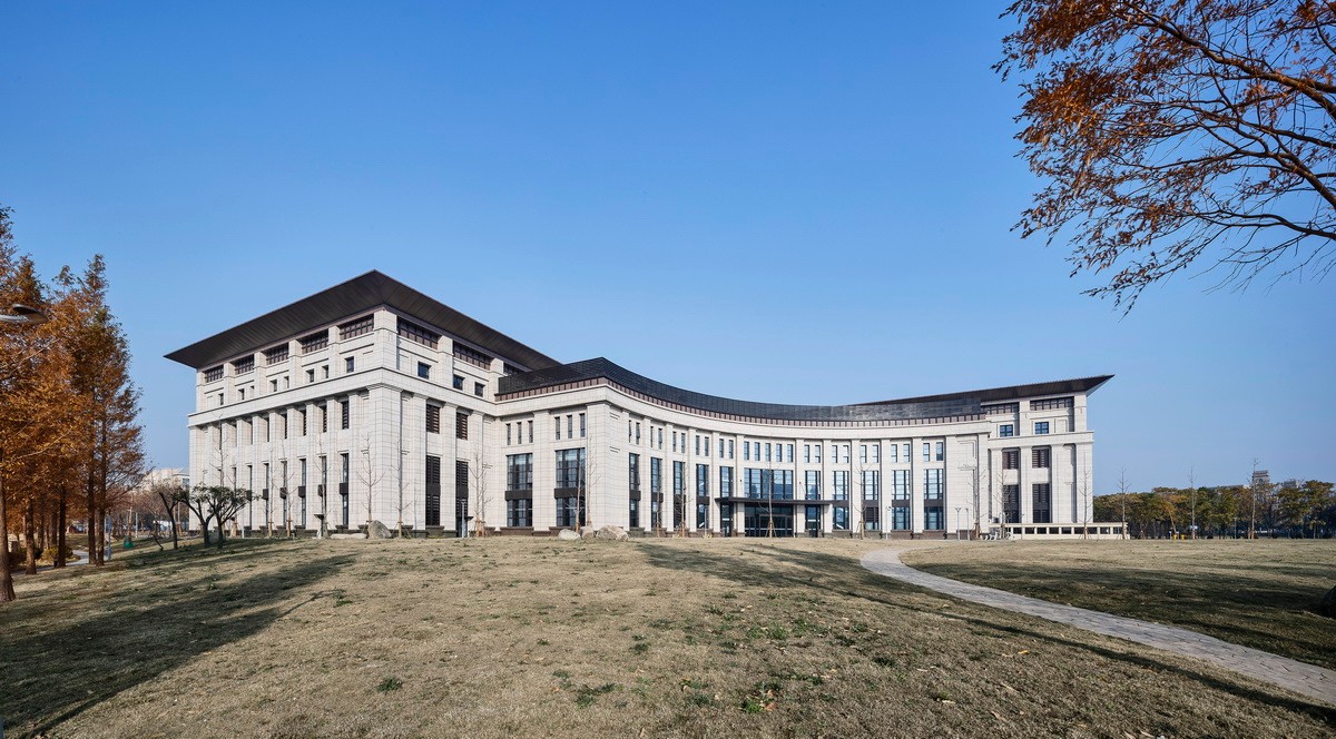 复旦江湾校区的综合体育馆是一座新建的体育馆,坐落在复旦新建江湾校区的优美湖畔边,校园整体风貌力求经典、优雅、传承百年,采用新古典主义建筑风格。