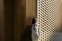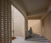 该结构采用双层围合设计,中央形成开放式的核心空间。蜿蜒的路径在内外墙之间缓缓上升,引导游客步入高出的二层回廊。行走其中,空气流动、光影变幻,以及竹叶的轻声摇曳,共同营造出一个不断变化的氛围,让人沉浸于多重感官体验之中。阳光透过镂空砖洒落,在墙面和地面投下斑驳光影,而穿堂的微风则让竹林低语,形成一场由自然主导的音乐演奏。