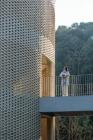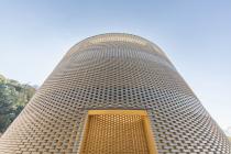 语竹的圆柱形态不仅塑造了独特的空间感,更对声音环境产生了精妙的影响。其多孔砖墙既允许周围环境音自然渗透,又能调节声波,使空间体验更具亲密感。风穿过竹林,竹叶的沙沙声被放大,成为一种独特的自然音乐。与传统的演奏厅不同,语竹没有一个固定的表演中心,而是让声音和人的移动自由流动,引导个性化的探索与互动。