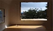 茶室是建立在板栗树干上,从附近的山上砍伐,运送到现场。只能通过一个独立的梯子到达。传统上的茶艺大师建立自己的茶室,Fujimori设计了自己独自使用的茶室。室内使用石膏和竹席。茶室名字的意思是“高处的茶室”。Terunobu Fujimori是学者也是建筑师,他认为,此茶室是“绝对个性的设计”。茶室极其紧凑,只有4个席子的面积(2.7平方米)。地板只有2个席子的面积(1.8平方米)。如此小的空间似乎是一个人身体的延续,好像一件衣服。
