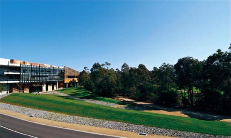 迪金大学中心区景观是B u r w o o d 校区新设施的一部分, 包括设计校园广场, 广场周围是四座由H 2 O 建筑师事务所设计的新大楼, 自然地将Gardiners小溪与未来的开发场地连接起来。平台位于大楼的北面与草坪相连,营造出大片沼泽地,考虑到校园的地形,以前的“方形草坪”通过设置阶梯成为“菱状草坪”。在小丘上种植植被和蕨类树木,将校园与新桥连接起来。沼泽地分布在草坪中,在雨水未流进溪流之前,对其进行收集、储存和管理。设计的对环境反映敏感的雨水处理系统,正是该项目所追求的目标。其他方法包括:灌溉、本土化植物的种植、以及提供更好的公共交通系统。迪金大学中心区选材精心,加强了与正面大楼之间的联系,并且通过这样的方式,形成当代大学校园的新风貌。