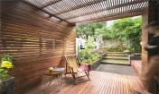 这个项目把一个私人住宅空地上的一块废弃不用的15英尺×50英尺的区域改造成了一个植被繁茂的花园和图书馆。这个凉亭是以一件可居住的装置概念进行设计的,穿插在一个繁茂的景观当中。这个结构表面附有当地回收的细木条,并作为进入两个差异大的情境、一个浓密的“野生”花园以及一个露天草地区(休息区)的入口。