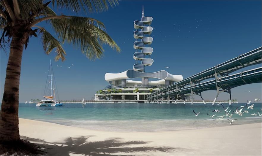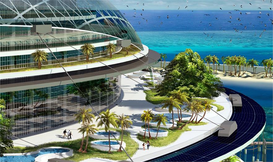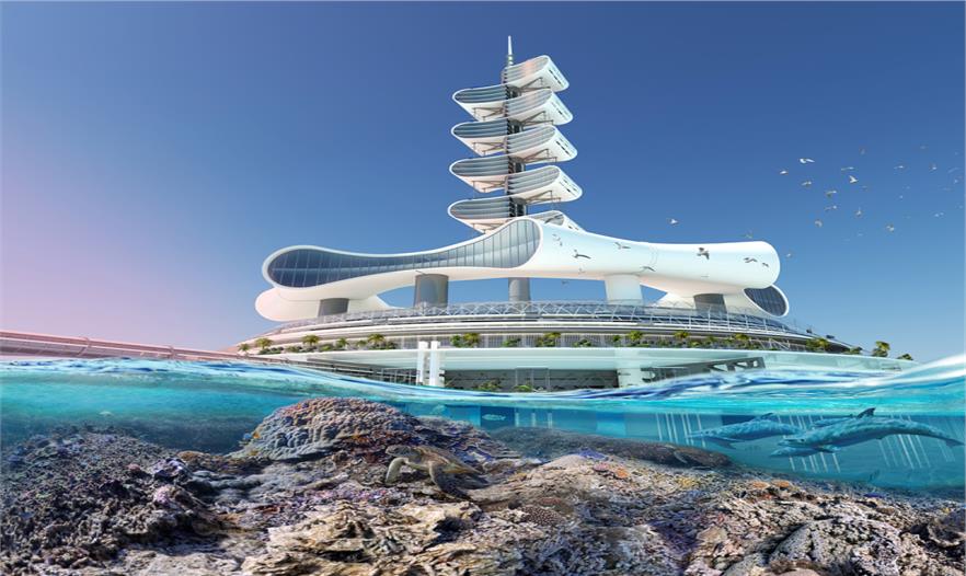 但是最有趣的部分是它能净化海洋。该建筑的形状、私人海滩和滨水区以及海岸会把水引导到废水收集器里,收集漂浮的固体和碳氢化合物。水将被养化和净化来增加海洋生物。水上,所有的一切规划都要关注环境、提升人们的责任感。