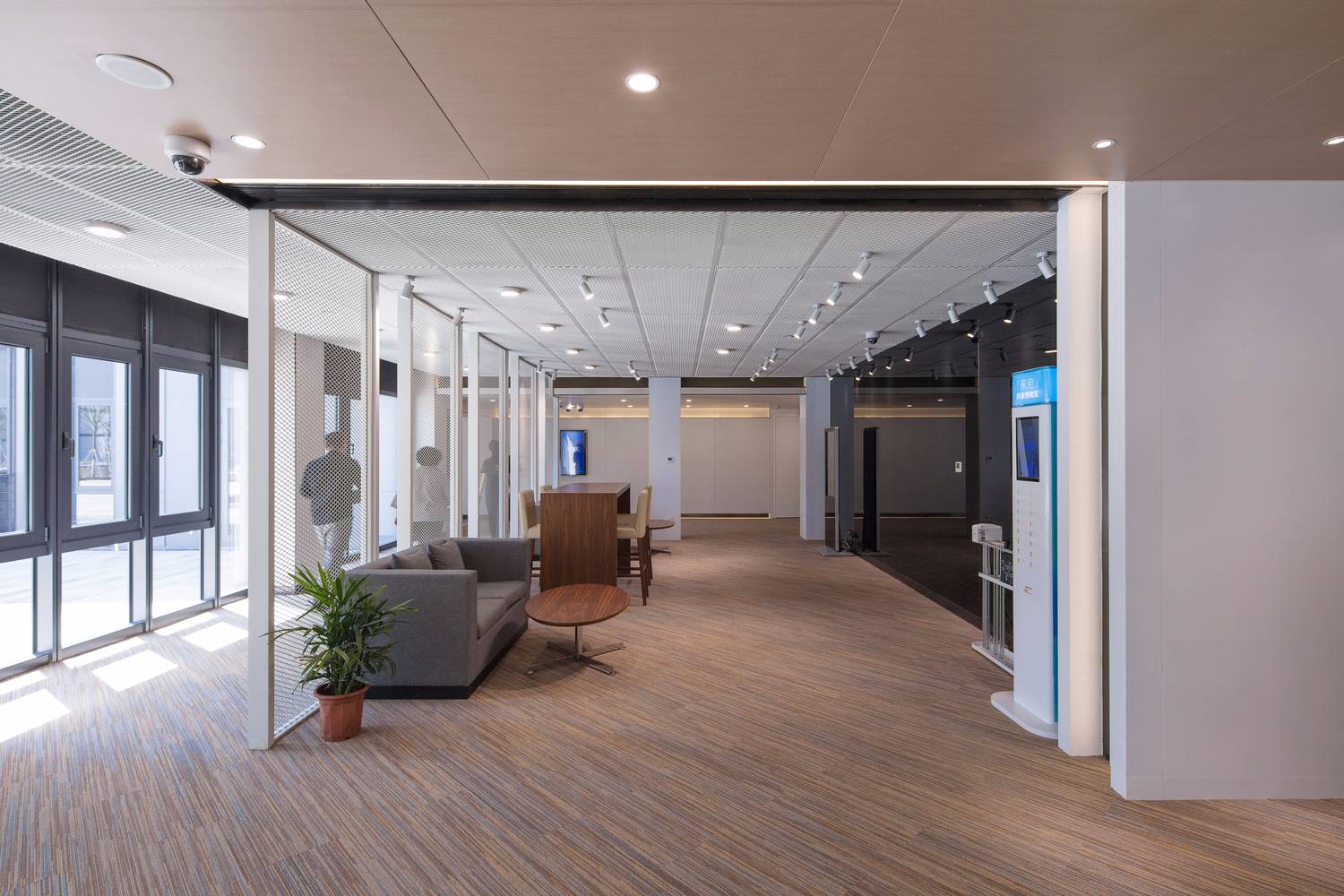 在这里有完善的共享服务体系。作为雄安新区第一个启动项目,周边基本全是农田,配套设施明显不足。我们在场地的中部设置了以公共的服务平台,在这里你可以有不同的选择,职工餐厅、特色餐饮、咖啡店、健身房、无人超市、文具店,应有尽有,共享共用。