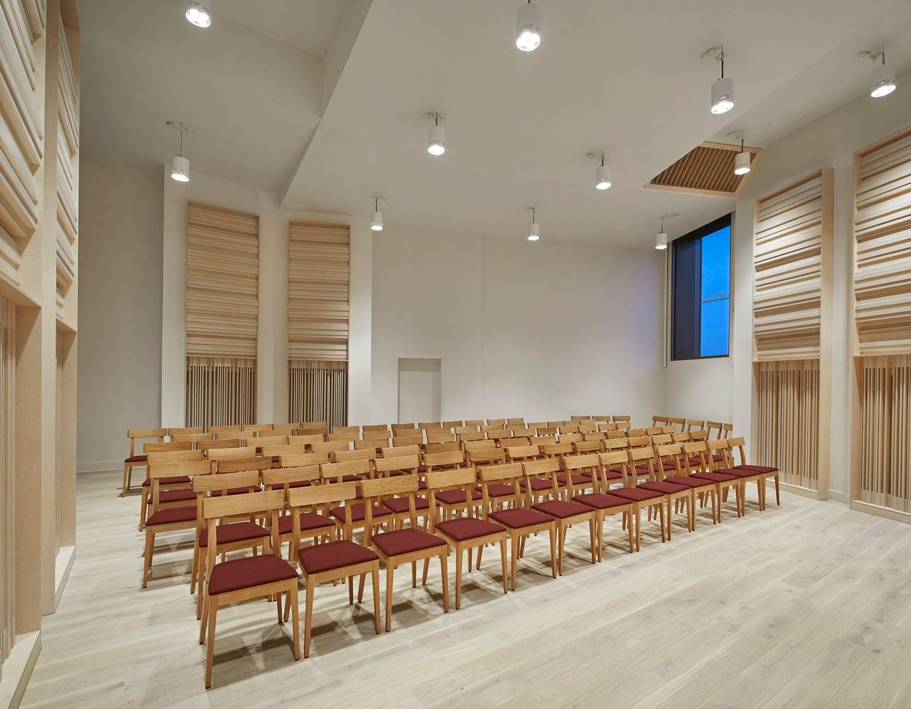 建筑里布置了五个表演场所:一个有500个座位的公共音乐厅,一个有150个座位的管弦乐演奏厅,一个作为实验音乐空间的“黑匣子”,一个有100个座位的管风琴演奏厅和一个东区爵士音乐俱乐部,以及70个大小不一的练习室。
