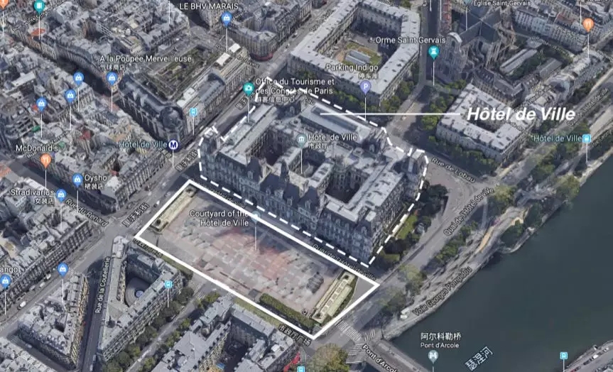 巴黎市政厅一直都作为巴黎的地标建筑而存在。市政厅的前广场上经常举办各类活动,外来旅游者也常以此作为打卡地标,它早已成为巴黎的城市名片之一。然而,硬质铺装以及匮乏的绿植正在侵蚀市政厅的生机。