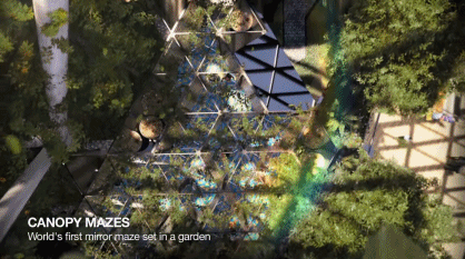 镜子迷宫反射出周遭,犹如跌入爱丽丝的奇幻梦境。