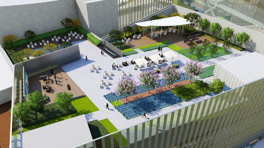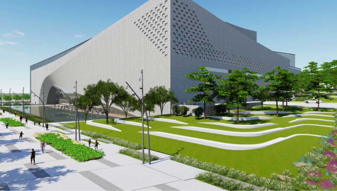 光明文化艺术中心项目作为光明区的重点项目,充分体现出光明区最大的特色,即光明的田园风光,因此我们确定了以抽象的田园作为景观设计的主题,形成了一个平行四边形的单元模数。将海绵的设施、网络融入到景观的模数中,并以海绵植物模仿自然界中的田园植物,充分反映主题。