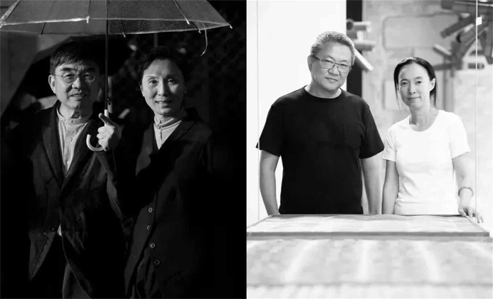 ▼左:张永和、鲁力佳 ©田方方 右:王澍、陆文宇 图源:业余建筑工作室