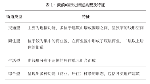 综合《鼓浪屿历史文化街区保护规划》、前期实地调研结果及相关既有研究,选择了一条最大化串联鼓浪屿核心遗产建筑要素,并包含交通型、商住型、生活型和综合型四种类型街道的研究路线(表1),路线总长度约3.5km,正常步行速度下虚拟漫游时长为20~30分钟。