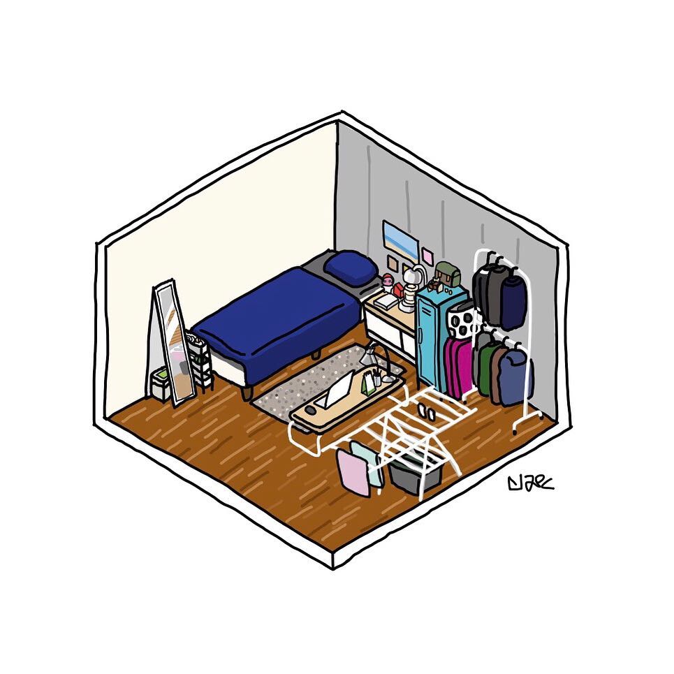 Instagram上一位韩国插画师(0.gan)创作了一组单人房间的轴测小画,非常可爱地呈现出各式各样单身生活的状态,有单间也有套房,有的整齐有的还没叠被子……不禁让人回想起自己曾经单身生活的那段回忆。