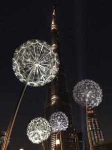 蒲公英景观灯,这是我见过的最大的蒲公英,它安装在世界上最高的建筑 - 哈利法塔(Burj Khalifa)旁边,每天有数以百万计的游客欣赏14个蒲公英的精美之美,这些蒲公英位于从迪拜歌剧院到哈利法塔的路上。