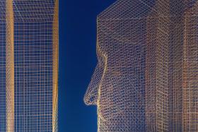 《边界》的体量延伸到建筑的最高点,距离地面约56米。装置由6个5.5米高的透明金属丝网体块构成,并沿着屋顶的边缘排列,每个体块的侧面都呈现出一张“人脸”。该装置与L’Illa Diagonal大楼的建筑形态产生了相互作用,但其富有韵律的观感则来源于“人脸”的不同朝向。抽象元素和比喻元素共同为装置赋予了一种在“满”与“空”之间不停变化的可塑张力,这在观者围绕建筑移动时将展现得更加明显。