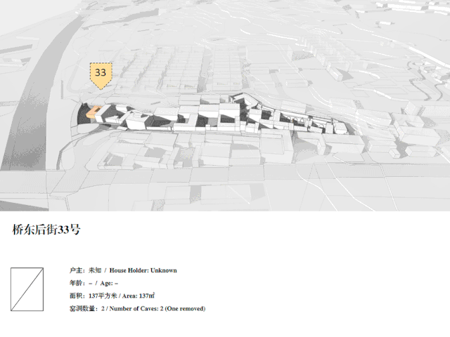 “长江村:历史 / 空间展”是有方2015年对长江村所做的深度调研的展览化呈现,内容涉及桥东后街窑洞群发掘、测绘、保留计划,以及长江北街15号石家宅院抢救性调研、测绘工作。