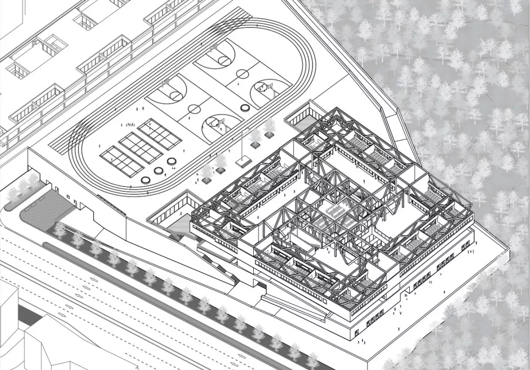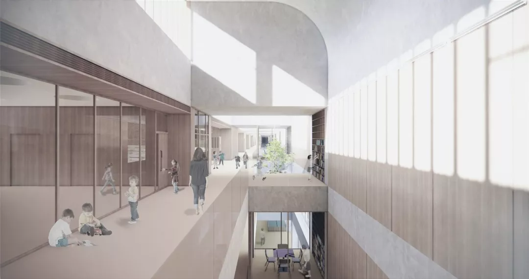 公共美术馆空间被引入一个普通的住区,无论是长江村的营建历史和民间记忆,还是新的艺术与设计趋势,都可以在这里得到展示和讨论。社区综合楼既是垂直街区,又与居住空间有机联系。小学与幼儿园也将不再是用围墙隔离起来的堡垒,而是通过创意规划和灵活管理,营造成供整个街区共享的多功能空间。
