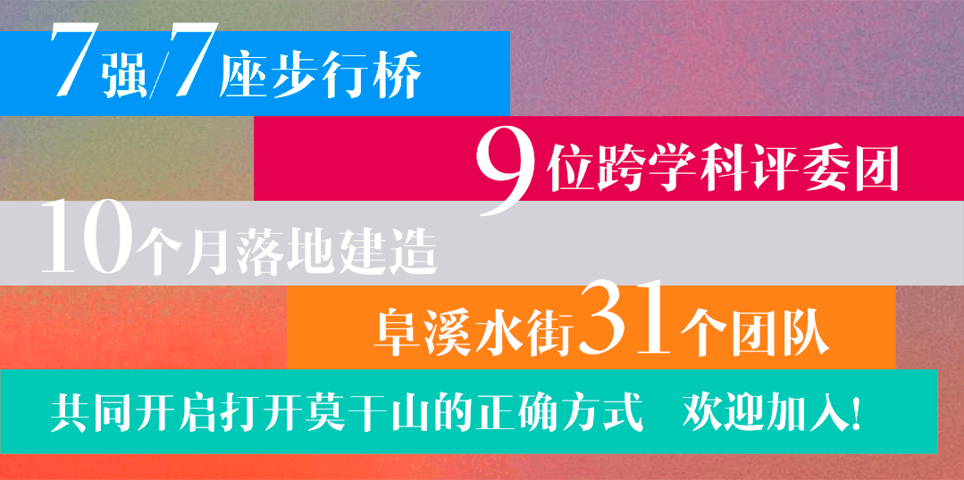 7强作品将成为莫干山镇阜溪七座桥梁落地的使用方案之参考,主办方德清文旅计划于2023年度建造完工