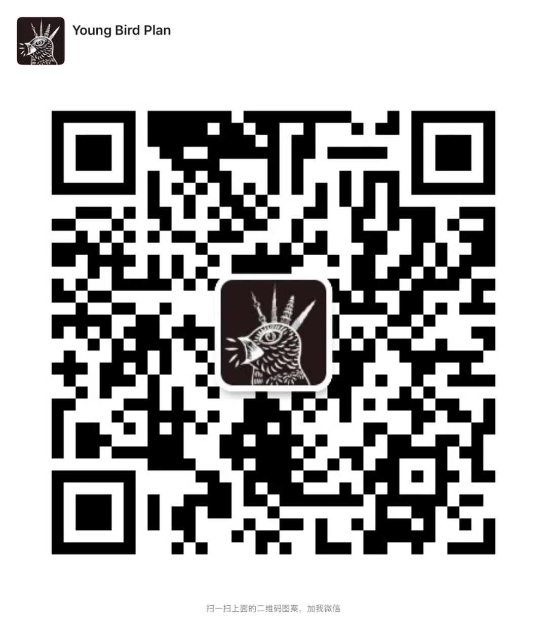如有任何疑问,可以扫码添加个人微信号:youngbirdplan