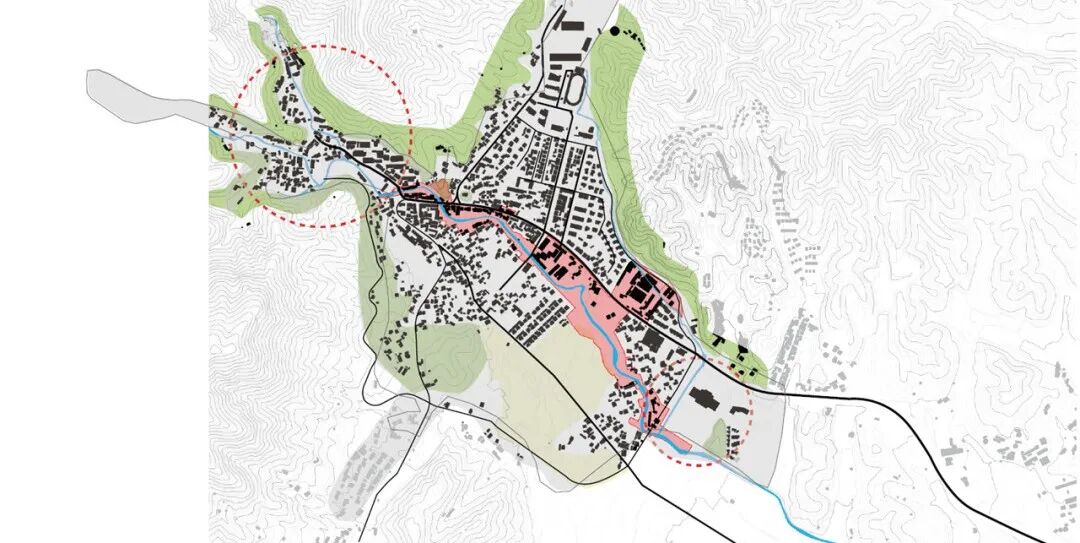阜溪,起源于莫干山剑池,自西向东穿过莫干山镇,奔涌而下,至德清环城水系。阜溪(莫干山镇段)全长1600米,在整体提升过程中,将沿着溪流的蜿蜒创造出不同的景观空间和丰富的视觉通廊。在阜溪两侧将布置不同面积类型的空间,满足小到摊档、创客快闪店,大到主力店、集合商业、创意办公以及公共艺术空间等多样化的业态需求,激活水岸活力,营造更多聚人的空间,也为莫干山镇区及周边地区的业态配套、缺失业态的补充,亮点业态的孵化与培育,提供空间的保障。