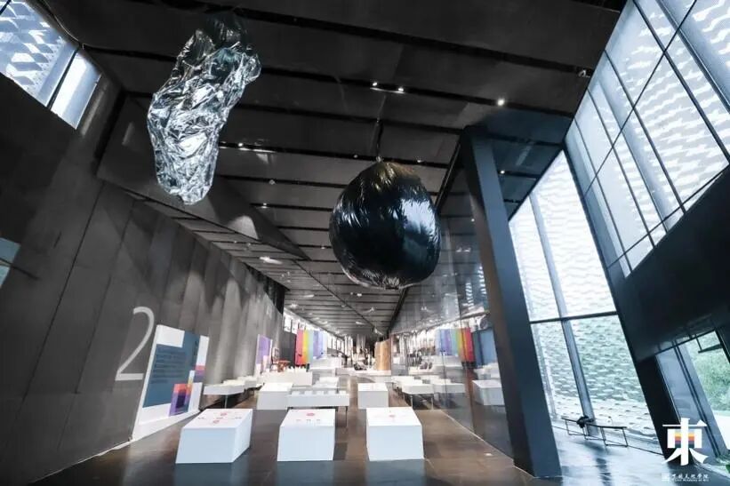雕塑与公共艺术学院教授郑靖一银一黑的装置作品从太湖石的形态缓慢变为球形,收放间涵指出中国文化“含纳吞吐”的意向,开启整部展览的叙事篇章!