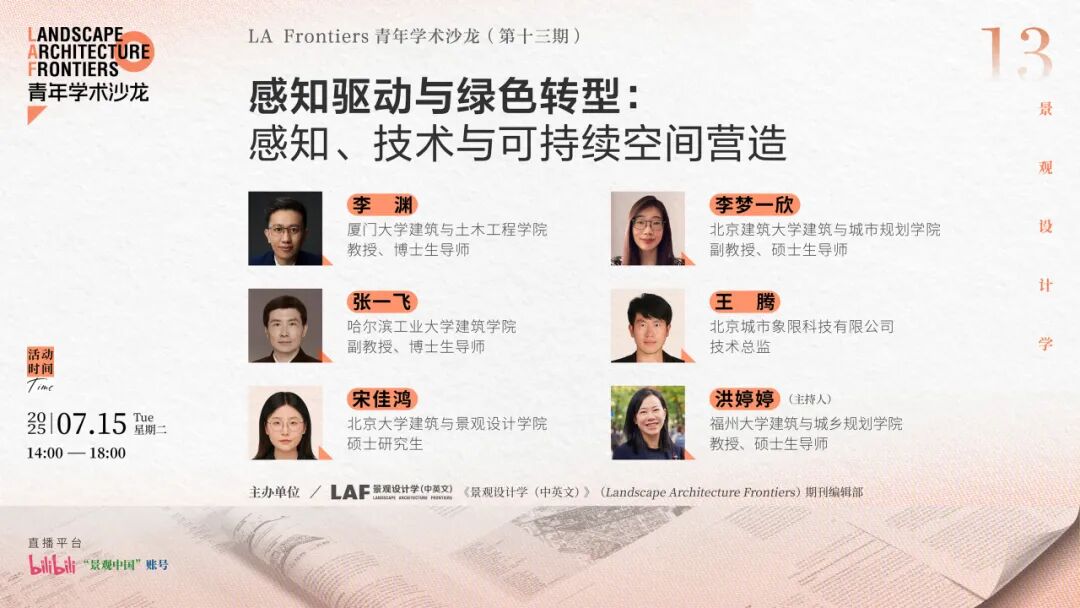 在数字技术快速演进与可持续发展议题日益紧迫的背景下,空间环境的感知、使用偏好与绿色转型策略成为当前城市与自然空间研究的重要方向。本次学术沙龙邀请来自高校与企业的专家学者,从虚拟感知、行为偏好、技术赋能到绿色能源景观实践,系统探讨在新兴技术支持下,人类如何理解并塑造未来的空间环境。通过多维度的交流与碰撞,旨在为空间规划与景观设计注入新的理念与方法,推动学术研究与实践探索的深度融合。