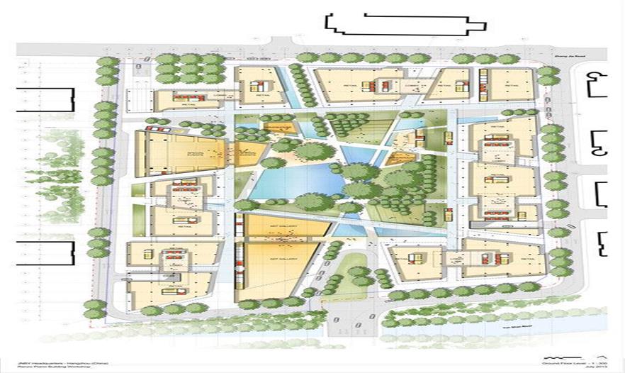 在江南布衣总部的项目中,伦佐自然而然的关注到了杭州人的当地生活,希望藉由建筑、景观、庭院营造街道的尺度和感受,形成一个相对隔离,但又处处生机的混合城市空间。枡野俊明先生理解并遵从总体的景观构想,准备将对自然的体验带入这个空间,对于这个正在构思还未出炉的庭院设计方案,我们期待它的实现。