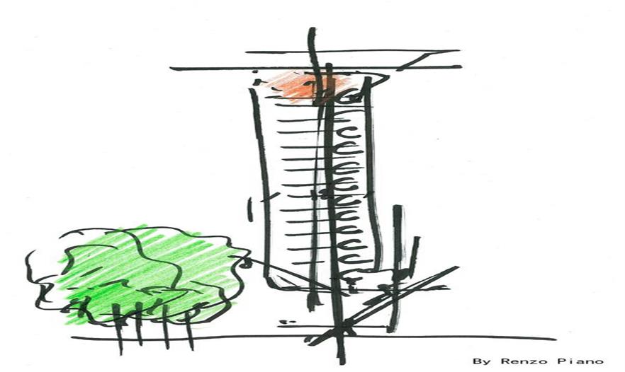 伦佐•皮亚诺手绘景观与建筑关系示意图 ©GOA