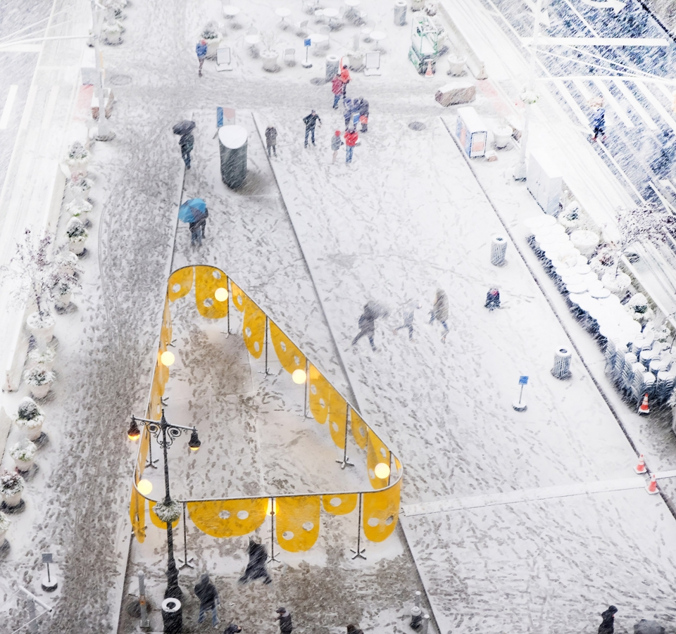 Studio Cadena的创始人兼负责人Benjamin Cadena说:“我们希望每个人在节日里都是幸福的。装置也向所有参观Flatiron的人表达了这种美好的祝福。在我们暗淡的社会和政治环境中,它渴望能够在城市中开辟出一小块更加积极的空间,在寒冷的冬天给人以温暖的拥抱。”
