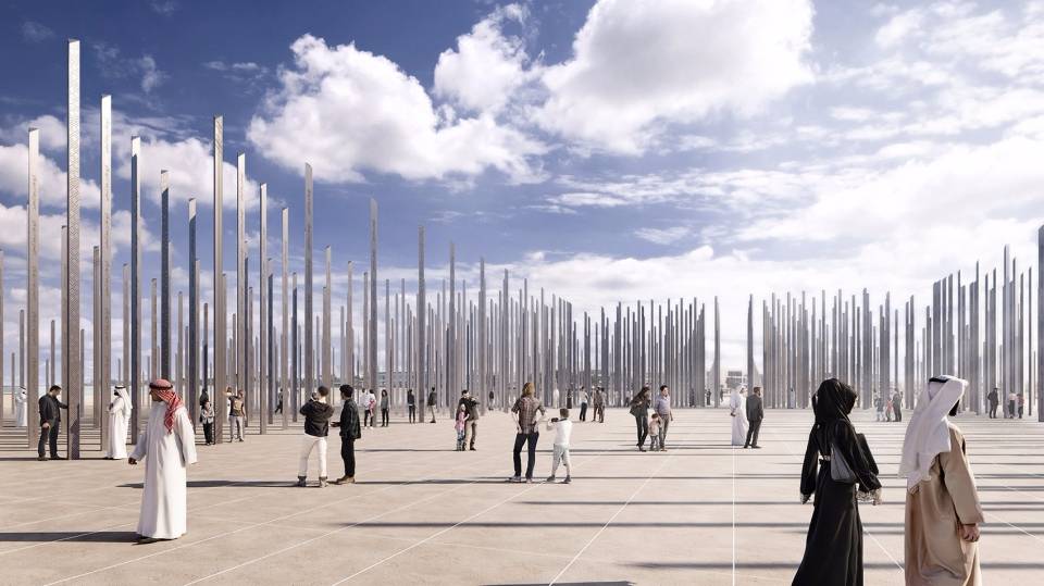 OMA与Inside Outside合作设计了“Ethar – 向慷慨致敬”这一景观项目,这是一片由柱子围合成的场地,柱身刻有阿拉伯学者、科学家和思想家的故事,形成了一个象征着慷慨与知识的纪念性景观。如今,这个装置已经成为迪拜城市景观的一部分,彰显着阿拉伯联合酋长国独特的慈善捐赠文化。