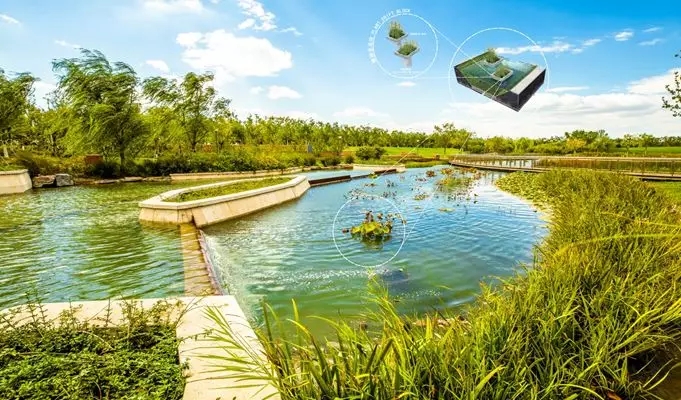 天津中新生态城甘露溪公园以弹性作为触媒。充分考虑新兴城镇和使用者的需求,提出可操作的分期建设计划,奥雅设计的团队在绿色海绵基底上(活体滤芯),构建一个灵活性、适应性、渐进性的开放空间体系的思路,以非固化的方式,给未来建设预留空间。
