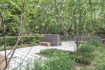 ▼梧桐树下的休憩空间