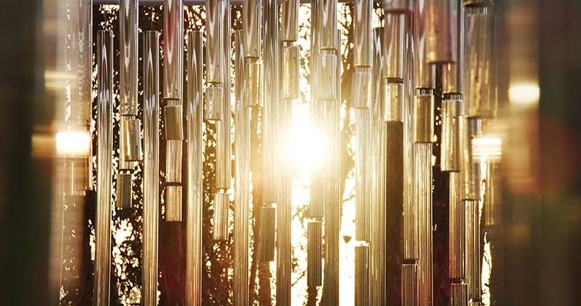 美国加利福尼亚州索诺玛DONUM葡萄酒庄园中的尤加利树林内收藏着艺术家doug aitken艺术作品,一个充满纪念性的声景装置——《声丘》(sonic mountain)。装置如同一个巨型风铃,当风掠过便会产生一个独特的声音,仿佛通过声音能看到风在林间起舞。doug aitken表示他想创造一个由自然演绎的,具有生命力的艺术品。
