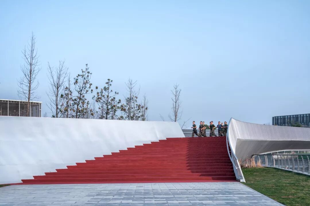 以三林北港桥为例,直线型的桥身直接连通南北两岸,但是在桥头和桥尾逐渐平展出两翼,直至形成与桥身融为一体的大台阶,自然地衔接桥前的景观广场。我们也希望从桥身延展出来的空间能提供另一种进入的可能,另一重体验滨江的视角,也能承载更多样的公共活动。