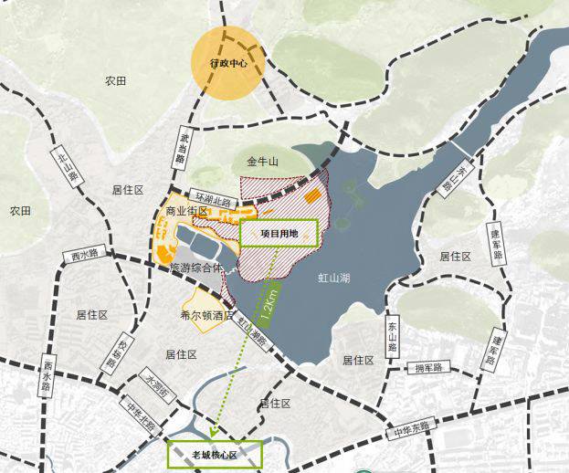 虹山湖公园的设计与城市发展导则相契合,侧重强调生态性、可持续发展性和 “海绵城市”的理念。通过构建大疏大密空间布局、层次丰富的景观,营造一个以生态为基底的市民活动公园,通过展示、体验、互动三种方式,使游人参与其中。乘优越地理位置之势,借良好的绿色基底,将曾经的废弃之地改造为一个焕发生机的公园,变无用为有用,变陈旧为新象,变沉寂为生动。