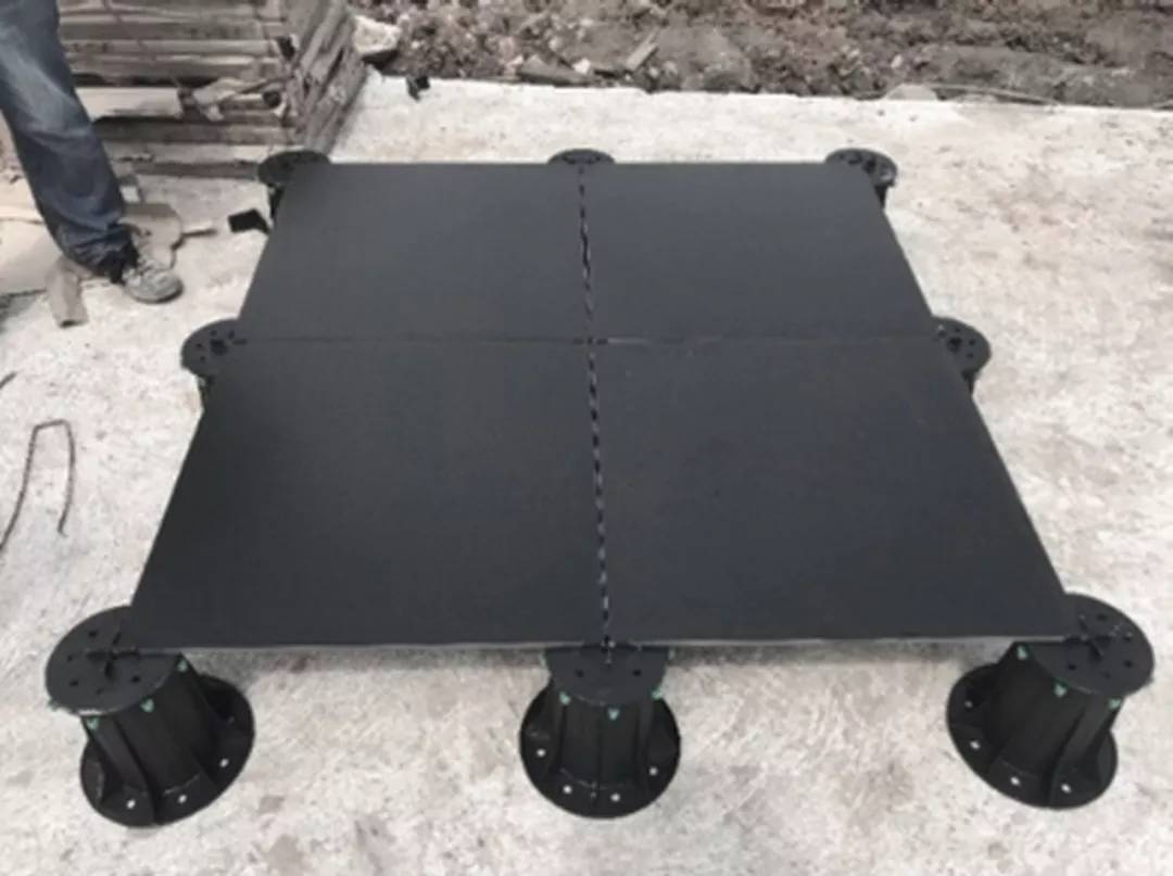 地面铺装结构采用悬空铺贴(又叫悬浮式铺装。顾名思义,就是一种砖体与地面不发生直接接触的铺贴方式。地砖通过地垫、托盘等支撑物与地面保持一定的距离,可以带来防湿防潮、减少静电的效果。同时,悬空铺贴方便修补整理,遇到损坏的砖片,可以单独更换。