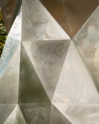 the project incorporates sustainability through the material choice, polished stainless steel