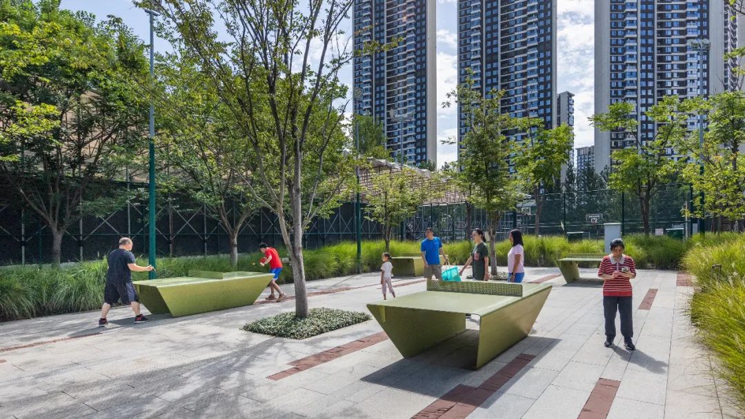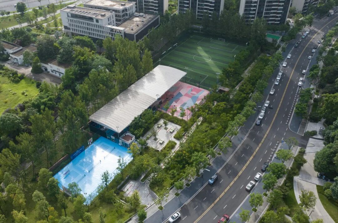 汉州路以东是运动公园的标准运动区,配备有一座7人制足球场、三座篮球场、一座门球场与乒乓球活动区,满足了居民对传统体育运动的需求。场地设计充分考虑了运动的舒适性和安全性,同时通过合理的布局,让运动爱好者们能够在这里尽情挥洒汗水,享受运动带来的快乐。