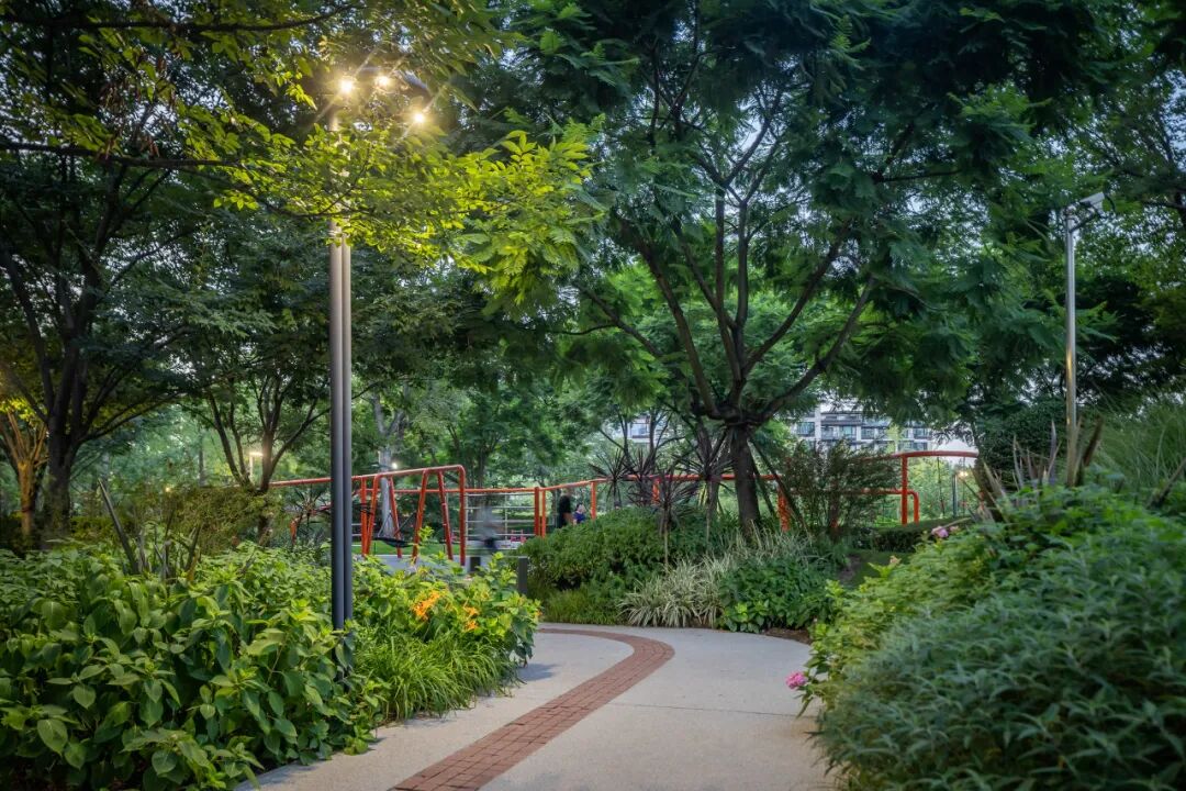 汉州路以西为全龄运动区,北侧区域设置菜园、社区自然课堂,更加关注健身与养生,为向往田园生活的居民提供一个亲近自然、享受健康劳作的理想空间,满足低强度的锻炼与休闲需求。