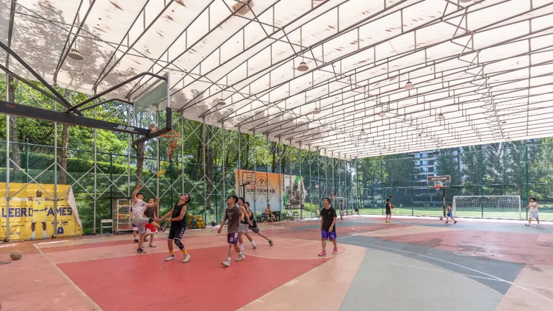 ▲两座篮球场设置遮阳棚 ©张锦影像工作室