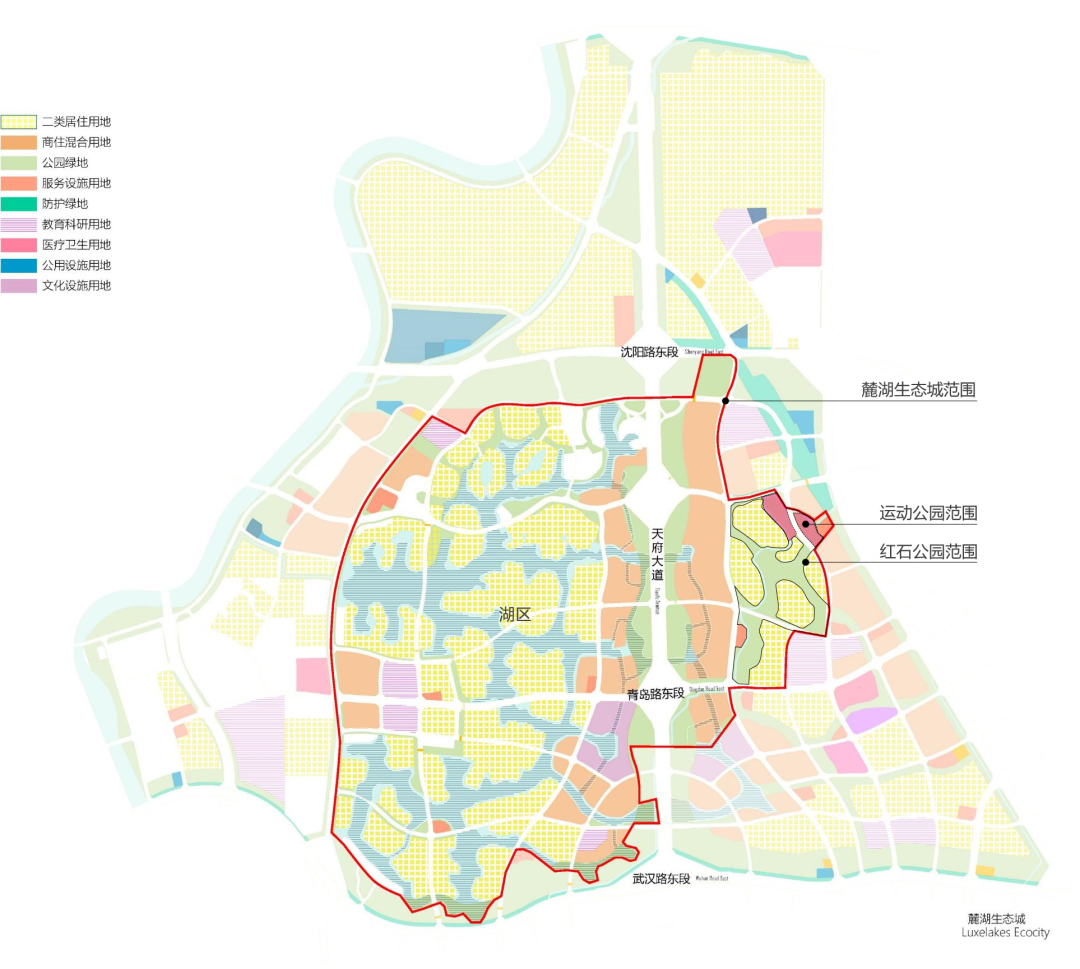 运动公园位于麓湖生态城东侧区域,隔天府大道与湖区相望,是生态城稀缺的纯陆地公园。场地总体呈十字形状,分布于数个居住组团中间的狭长谷地之上。