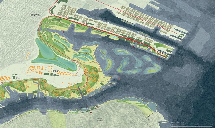 纽约海岸线海平面上升的前景令人担忧。让我们看一下预期的洪泛区,例如,科学家预计该区中每50年中就会有一年可能将有85%的区域淹没在水下。面对这样严峻的现实,我们积极应对即将到来的水面上升,重新改建海岸,以制造出一个可持续的充满活力的未来。