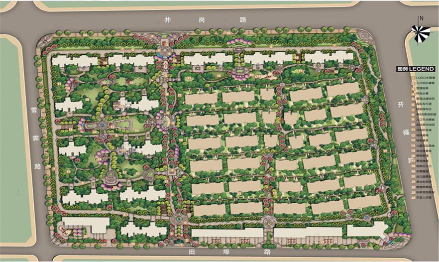 本項目位於合肥市蜀山區產業園區,景观设计采用新装饰风格,运用ARDECO 的设计元素符号打造欧洲新艺术古典风尚。小区為別墅和高層相結合的社區模式,高層建築間距大,有利於營造層次多變的景觀空間,整個社區採用新古典自然風情演繹尊貴奢華自然浪漫的社區生活,為奔波于城市的人們打造一個親近自然,放鬆身心的心靈港灣。