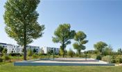 排水洼地也建在小溪沿线,收集周边住宅区的雨水。从这里看,雨水会一点点地排放到河里。这条带区包括几个吸引游客在滨水区沿线休息的地方。游客通过桥梁横穿这条河流。为了创造认识价值,入口区域进行了同等设计。