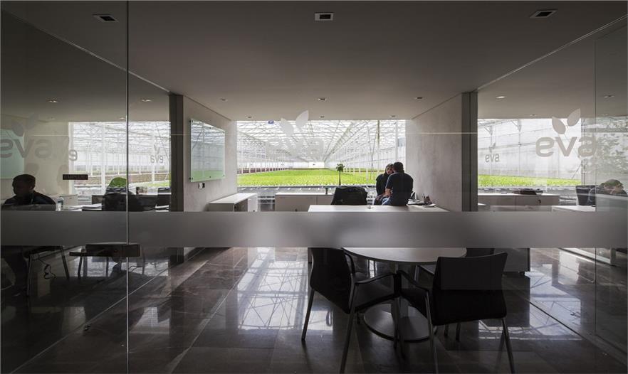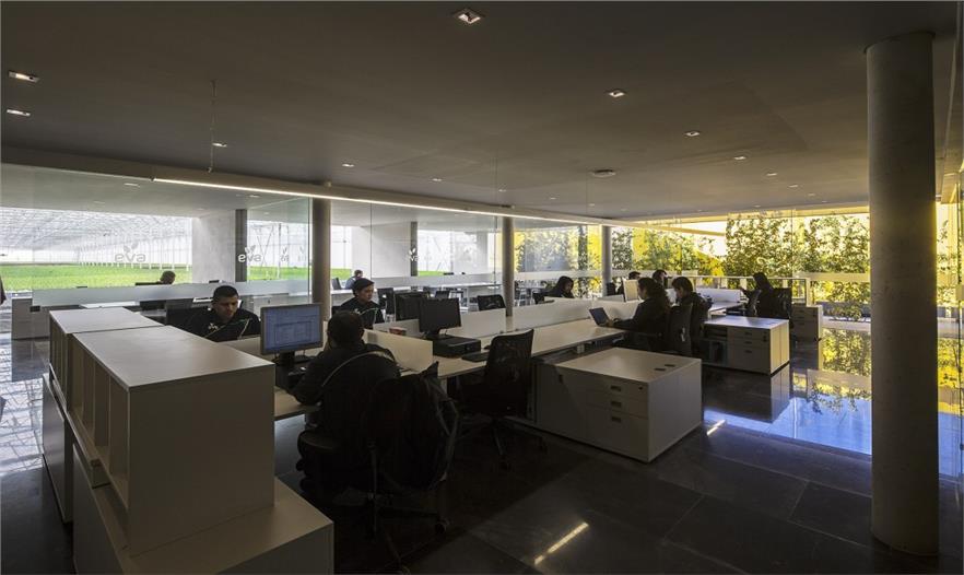 Next水培蔬菜基地办公室位于两个大型蔬菜生产基地之间,建筑师希望通过设计,创造一个可以突出各管理部门在工作中不断协同与互动的和谐工作环境,消除传统工作空间的呆板氛围,唤起员工向着共同目标携手共进的团队精神。