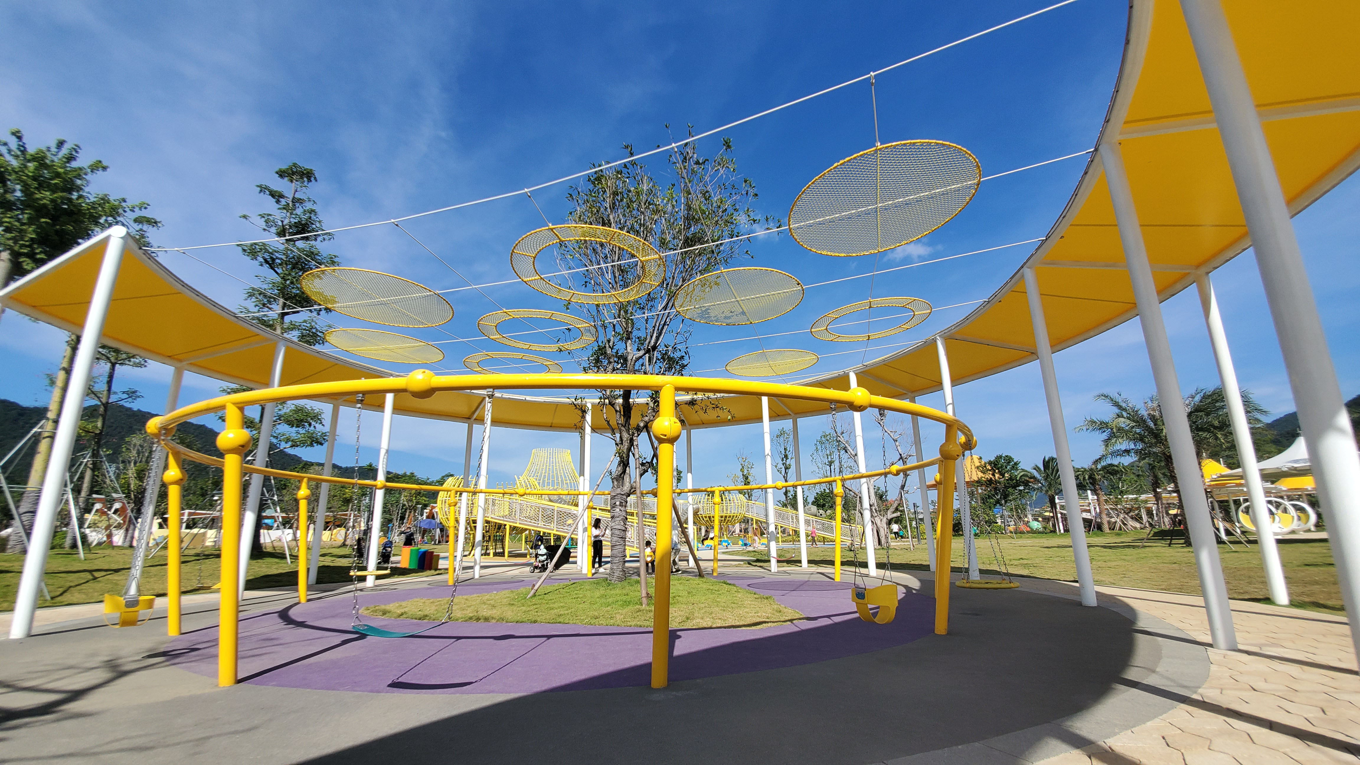 秋千岛有别于传统秋千,由一个个巨大的鸟巢组成,里面包含各式各样的秋千,体验不一样的乐趣。金碧辉煌融合弧形设计将多项元素串联,促进孩子们骨骼肌肉发育,同时也利于增强社交能力。