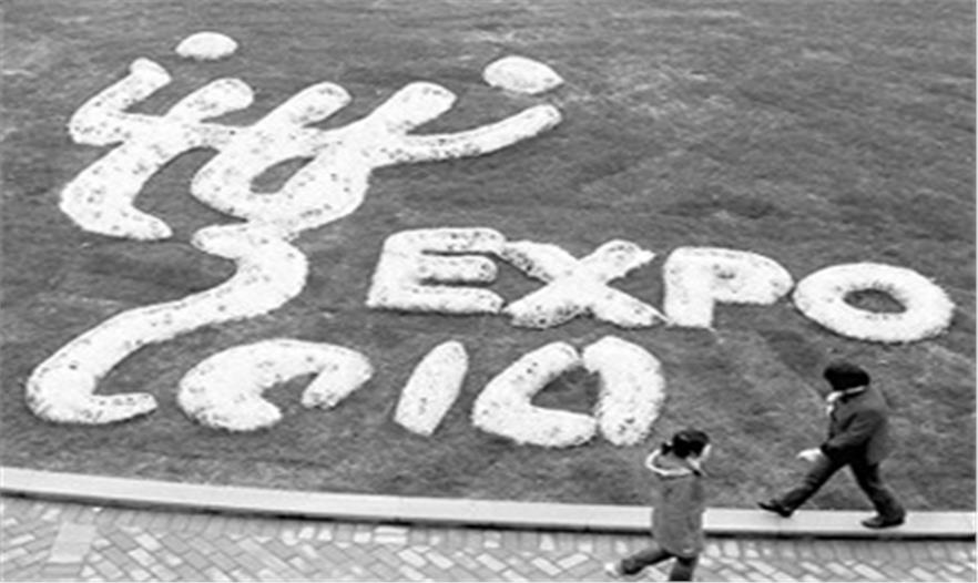 申城街头迎世博的氛围越来越浓。在延安中路华山路口一处新建的绿地上,由细白石做成的世博标志景观格外引人注目,石中还专设了节能灯泡,晚间也能闪烁泛光,成为一道迎世博的特别风景。