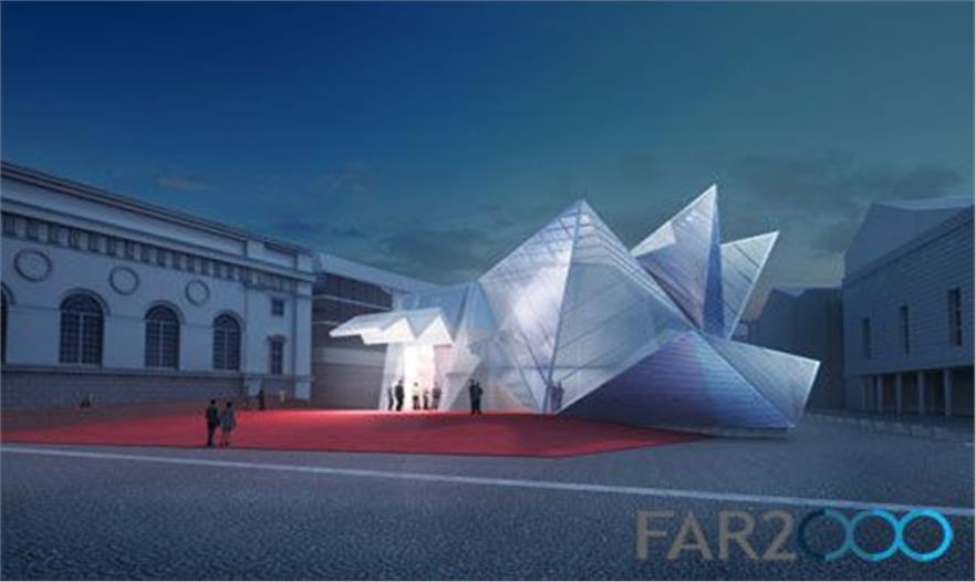 设计任务并不轻松,既要音响效果良好,又要在视觉上吸引人,同时还要轻质可移动。设计师采用倾斜的墙体保证了音响效果,增加了表面面积。另外一个策略是减少外部声音对歌剧院的干扰。这座建筑长21米,宽17米,高6到8米,看上去更像是一个声音反射区,挡住了过往汽车的噪声。