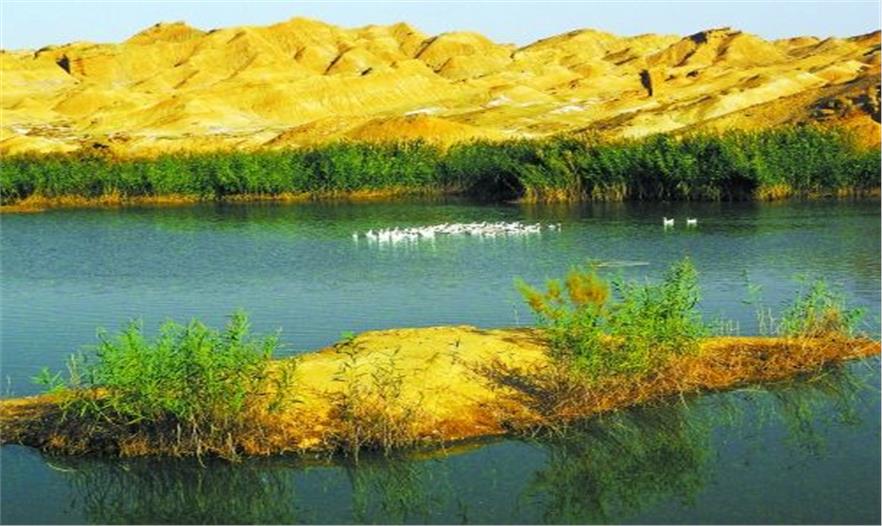 你能想象这是在寸草不生的荒漠中拍到的镜头吗!这片位于塔里木油田克拉2气田的人工湿地水表面积1.63万平方米。