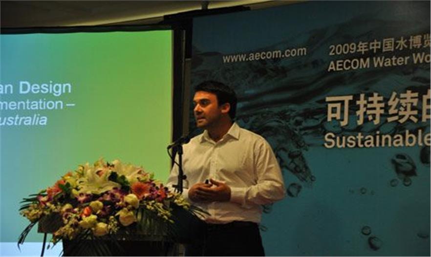 今天在水利部和中国水利协会共同发起的中国国际水务高峰论坛里面,也是中国对水务资源进行挑战的一个积极的动作和举措,今年AECOM非常荣幸能够有这样一个机会参加这个意义深远的活动,并且和水博会共同举办一个可持续水资源管理研讨会。AECOM的企业宗旨是持之以恒的改善并且维护世界各地的建筑设施、自然环境和社会环境的可持续性发展。在这样的宗旨之下,我们在中国,不仅仅在中央,在各级政府部门,业界以及开发商和媒体都建立了非常好的关系,我们也开展了规划设计、交通、能源、生态、建筑和水资源各项专题的工作。我们是能够提供综合性水务服务的,其中包括水资源的管理,废水的处理,饮用水的应用以及测绘。在进行项目之外,刚才梁先生也说了,我们非常致力于许多专业上和学术的探讨,比如说我们和国家林业局举办了中国湿地保护论坛,同时我们也出了一本中国的湿地恢复手册,我们最近刚好也完成了中国湿地公园的规划导则。这些都是国内第一次在这个领域里面非常重要的一些工具书。